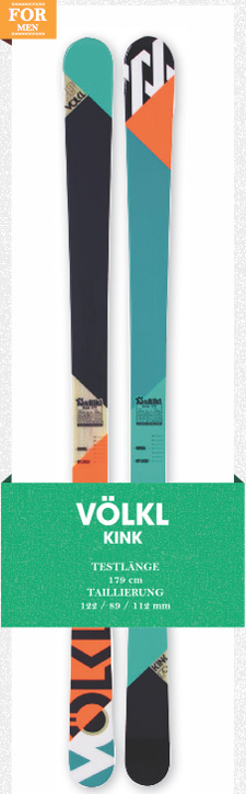 Nagelneu in der Kollektion der Straubinger ist der „Kink“, der sich als absoluter Pisten-Flitzer präsen- tierte, was er in erster Linie seinem harten Flex zu verdanken hat. Egal wie radikal man am Gashahn des Twintip dreht, er bleibt stabil. Einige Tester konnten sich sogar vorstel- len, mit dem Völkl Riesenslaloms zu bestreiten. Demnach attestierten ihm die Fahrer durch die Bank eine fantastische Kicker-Performance. Egal welch massiver Roller sich vor euch auftürmt, mit der türkisen Speed-Maschine seid ihr bestens gerüstet, um die Bestie zu besiegen. Auch in der Pipe katapultiert dich der Ski schön aus der Wall. Abstri- che gab es bei der Jib Performance. Hier erwies sich der „Kink“ als zu hart. Für slushy Sessions sind die Tips zu flach und neigen gerne mal zum Einspitzeln. Guter Park-Ski!