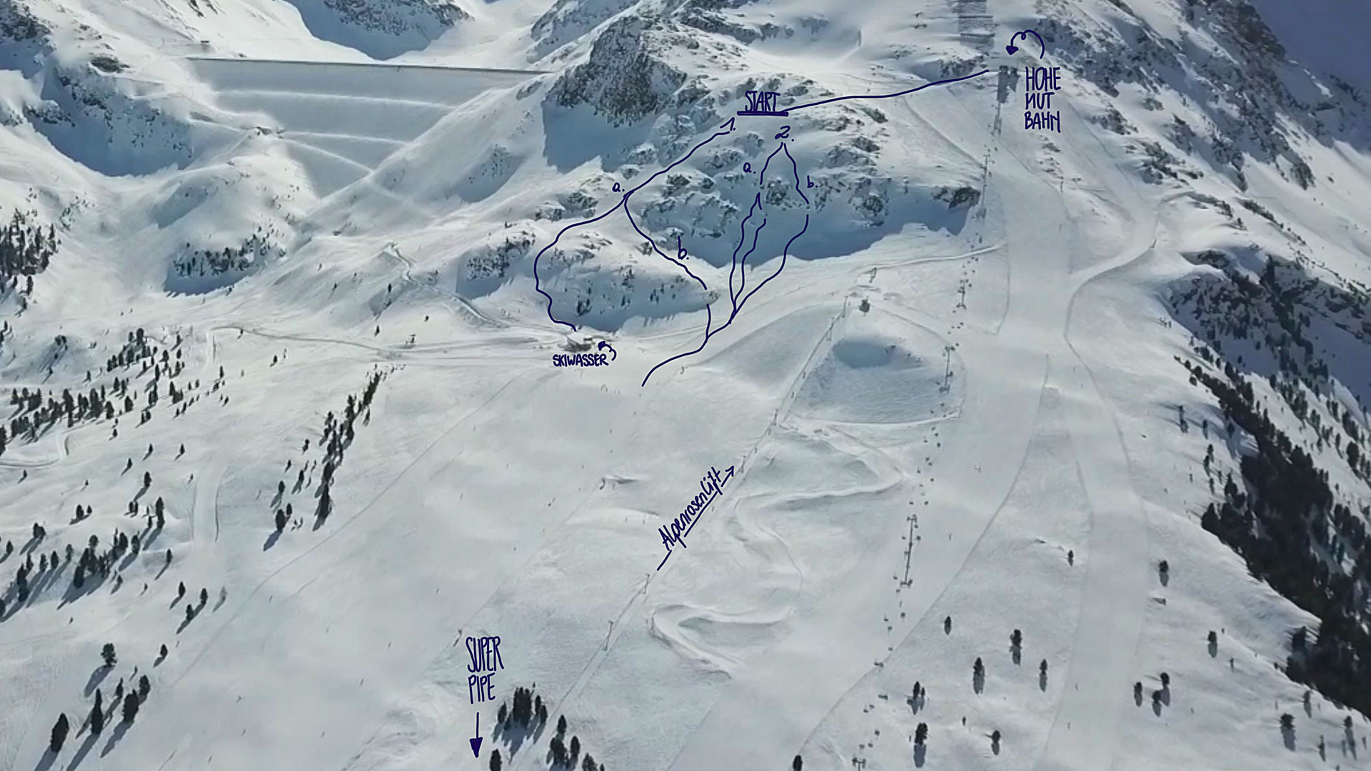 Es gibt aber auch richtig gutes Terrain neben den Pisten, das bequem mit dem Lift erreichbar ist. Die Hänge neben dem Gaiskogellift sind relativ steil und erwischen einiges an Powder, wenn Frau Holle sich wieder dazu entschlossen hat, ihre Kissen auszuschütteln. Nebenan befindet sich der Drei-Seen-Lift. Den Lift raus, Riders Left abbiegen und über den Cliffs queeren – aber Achtung: Nur wer geübt ist, sollte sich über solche Traversen trauen. Angekommen an der Lookers Left-Seite des Hanges, gibt es einen Run, den man individuell gestalten kann. Da der Hang allerdings relativ steil ist, sollte man im Freeriden schon ein paar Kilometer gesammelt haben. Hier stechen einige kleinere und ein größeres Cliff ins Auge, welche man definitiv mitnehmen sollte. Ein bisserl Airtime tut auch im Gelände gut.