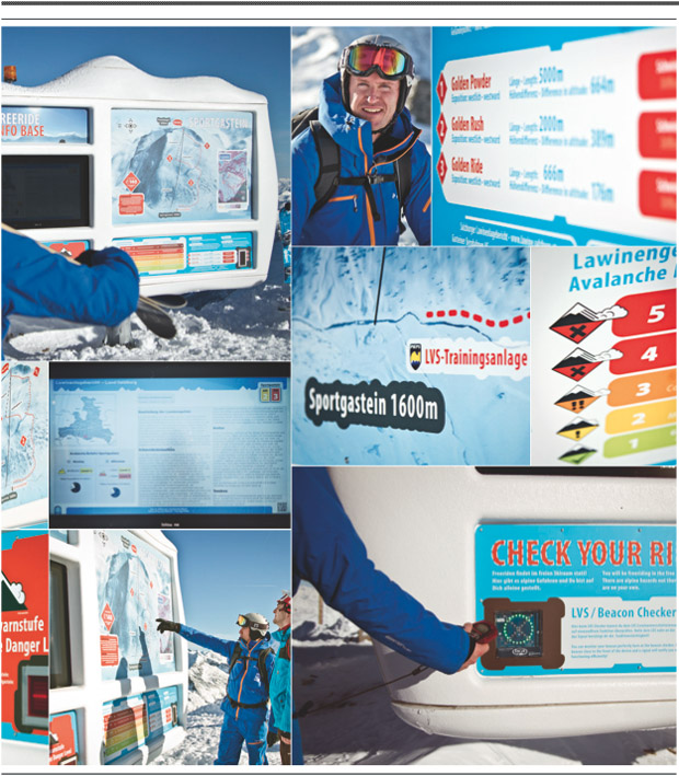Wer in Sportgastein zum Freeriden geht, wird an der Berg- station zwangsläufig auf eine weiße, mit elektronischen Gimmicks gespickte Tafel stoßen: die Freeride Info Base....