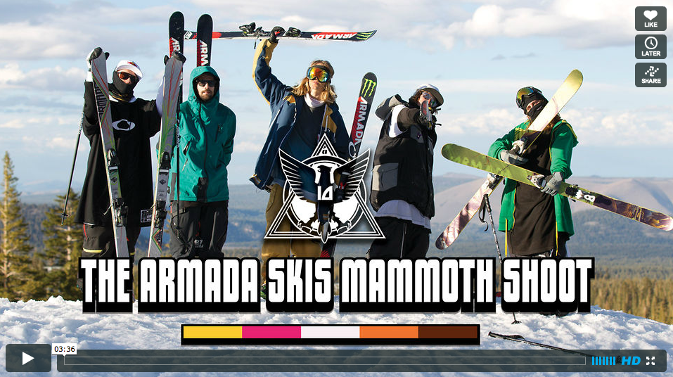 http://vimeo.com/47691400 The Armada Skis Mammoth Shoot ft. Tanner Hall, JP Auclair, Phil Casabon, Jacob Wester, and Henrik Harlaut from ARMADA SKIS INC. on Vimeo. Zum ersten...