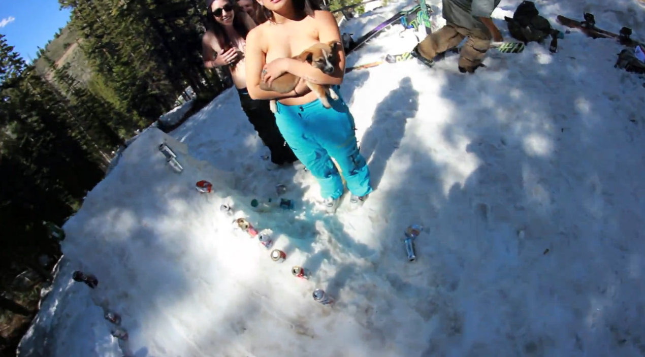 Diese Guys der Hoodcrew sollen bitte nicht als Vorbild dienen. Mit Booze, Smoke und halb-nackten Girls auf dem Berg. Offensichtlich hat da der Alkoholteufel schon gut...