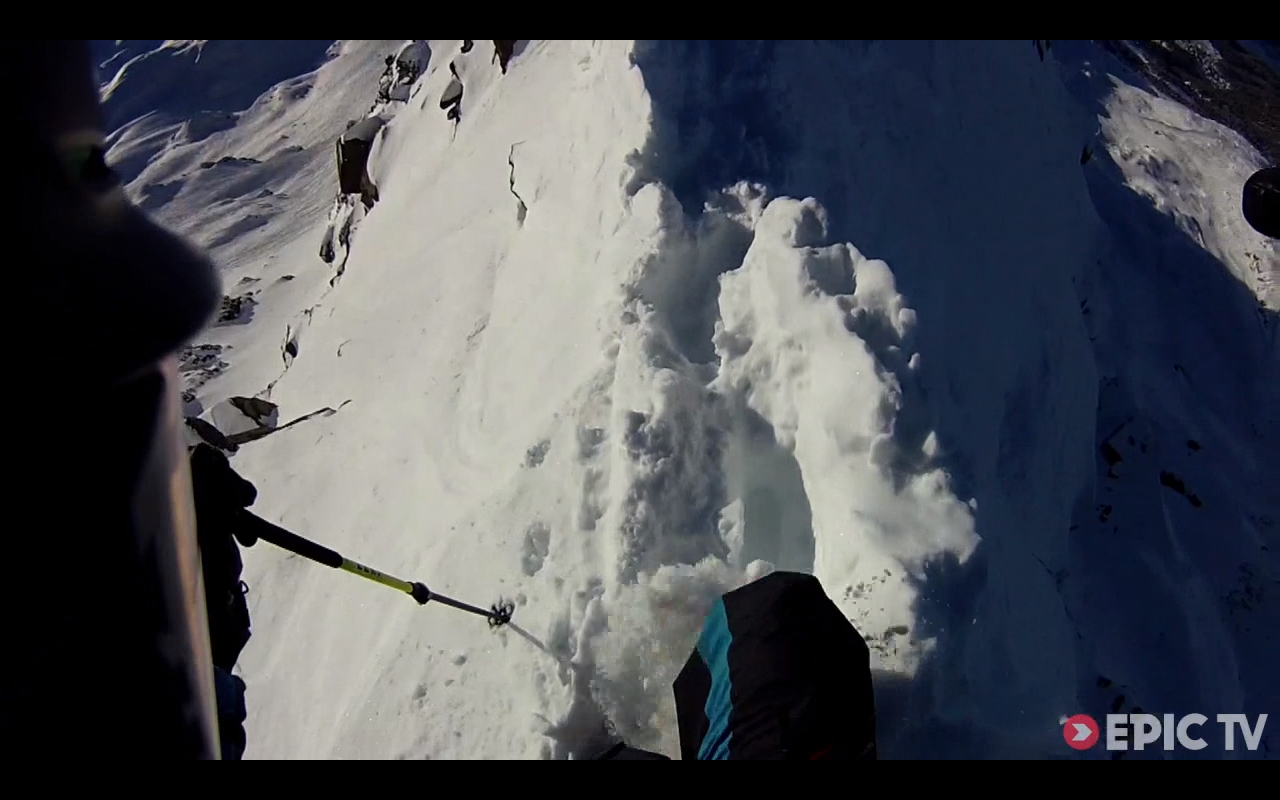 http://www.youtube.com/watch?v=me-dfav5wtI Daron Rahlves löst bei Dreharbeiten zu dem Teton Gravity Research Film The Dream Factory ein Schneebrett in einer Spine Line in AK aus. Anfangs sieht es so...