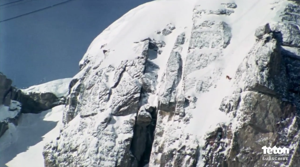 Erik Roner ski BASE jumpt aus dem Cajon Couloir in Jackson Hole . Das Cliff am Ende der Rinne ist nur 65 Meter hoch. “Nur”...