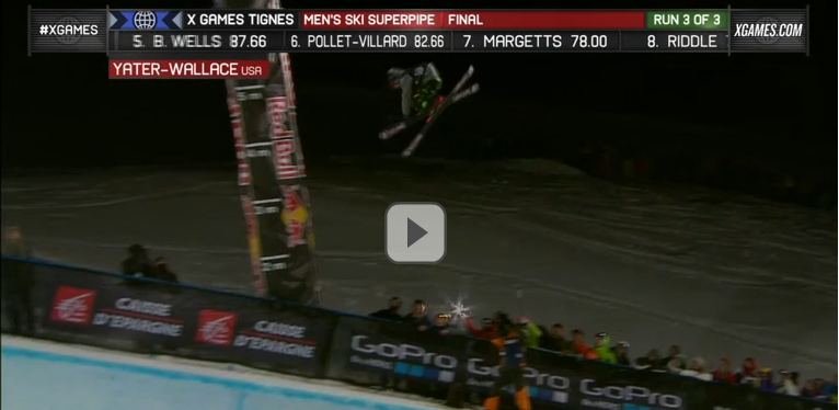 Torin Yater Wallace bekommt mit einer 93.66 in seinem letzten Run die Gold Medaille beim Men’s Ski Superpipe Finale der X-Games in Tignes. Hier sein...