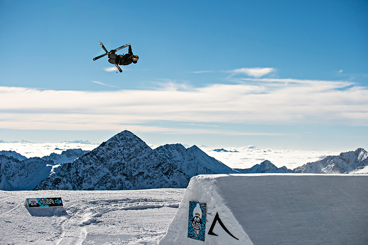 Tom Wallisch testet seine neuen LINE Skis auf den Stubai Prime Park Sessions