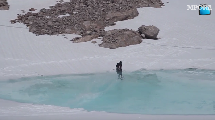 Die beiden FASC Shredder Simon Bartik und Kristyna Kapounova vergnügen sich im Sommer-Sulz des Dachstein Gletschers.