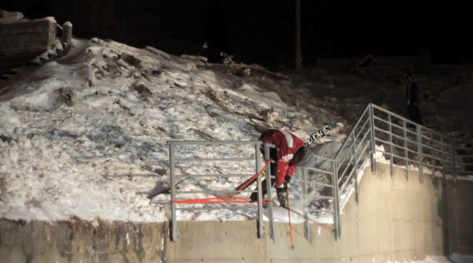Ted meint selbst dazu: “I had already skied this line a couple times with no problems and the light had gotten too bad to film so I took one last run for fun with my GoPro on. I hit a piece of hard snow or rock while my sluff took out my tails simultaneously. Luckily I was just able to get onto my feet but not in balance before the cliff. 2nd big fall of the trip, first one I lost my other GoPro so no footage.”